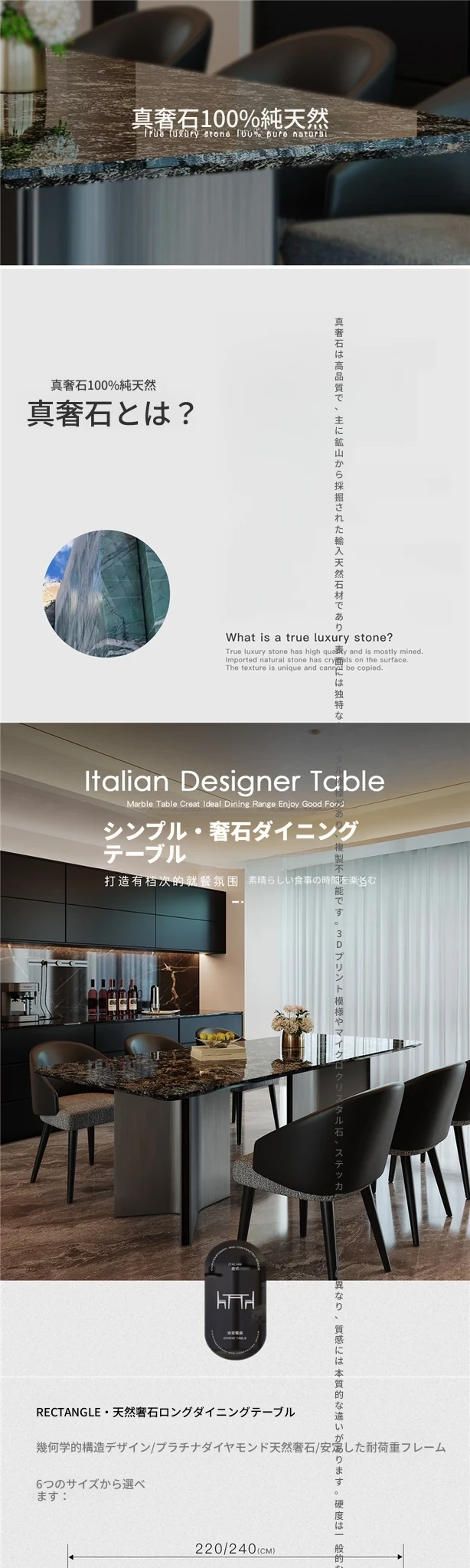 1.8メートル輸入天然プラチナダイヤモンド高級石製ダイニングテーブル【 偽物は十倍返し】