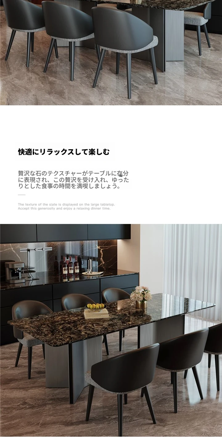 2.2メートル輸入天然プラチナダイヤモンド高級石製ダイニングテーブル+本革ダイニングチェア6脚