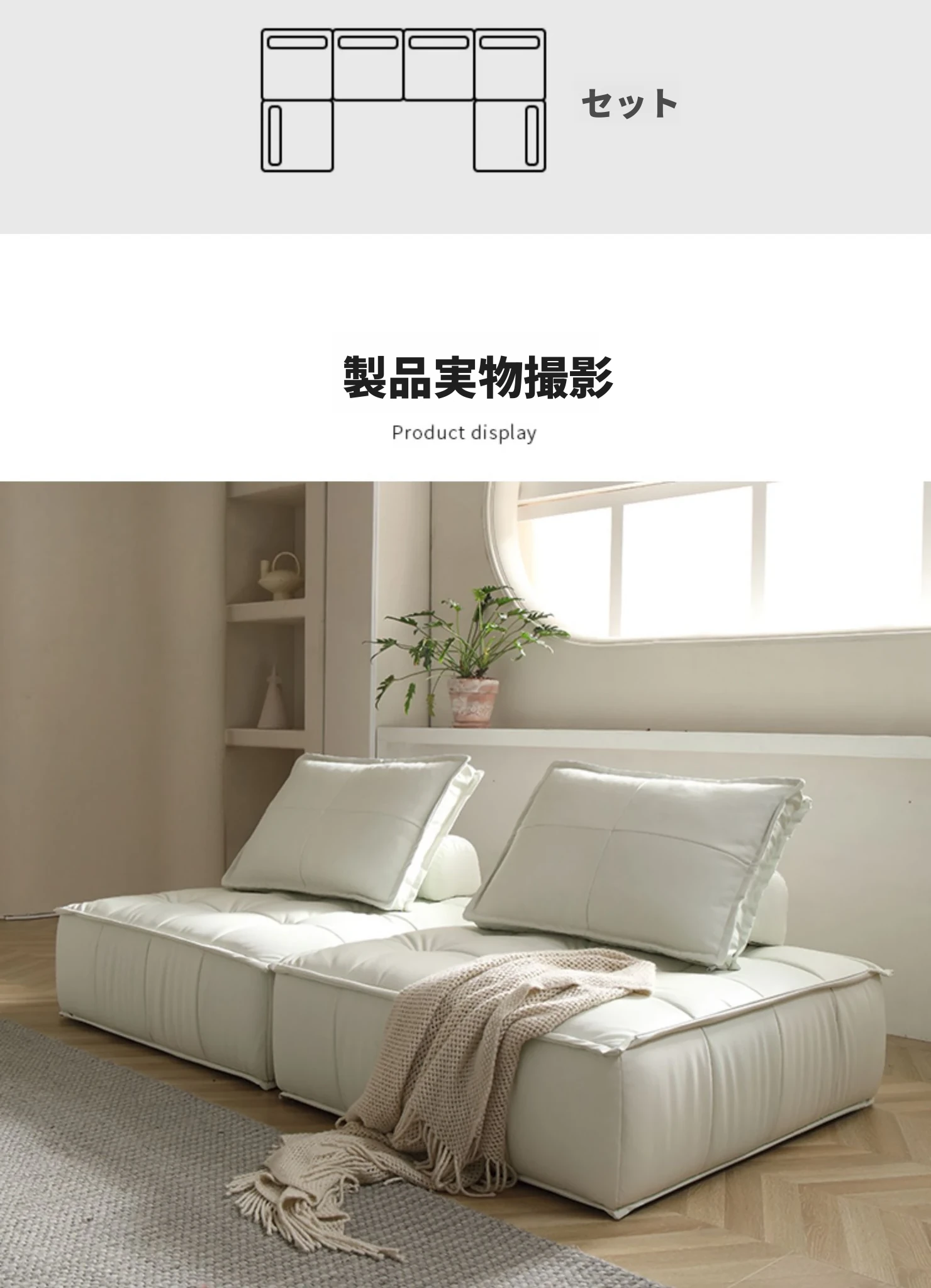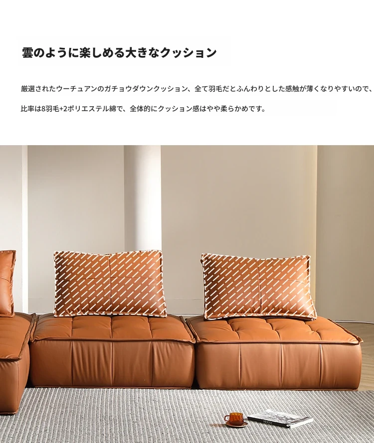 フラッグシップ版三人掛け(1.87m*1.08m)独立スプリングパック内蔵【接触面本革トップグレード牛革+羽毛クッション】