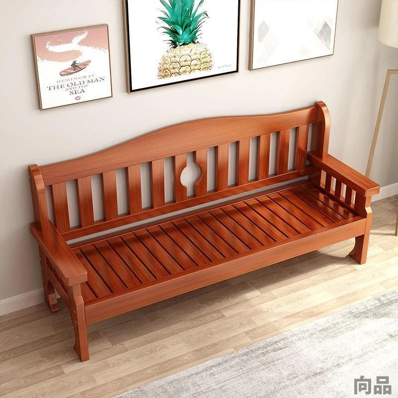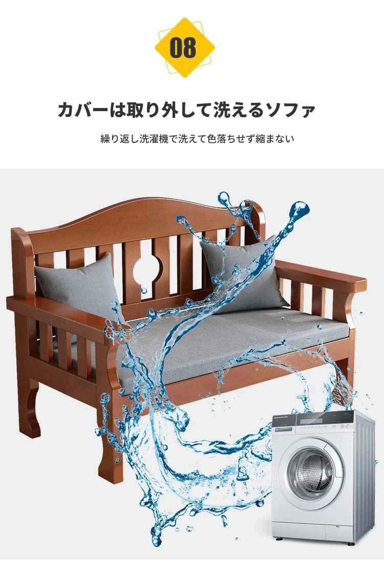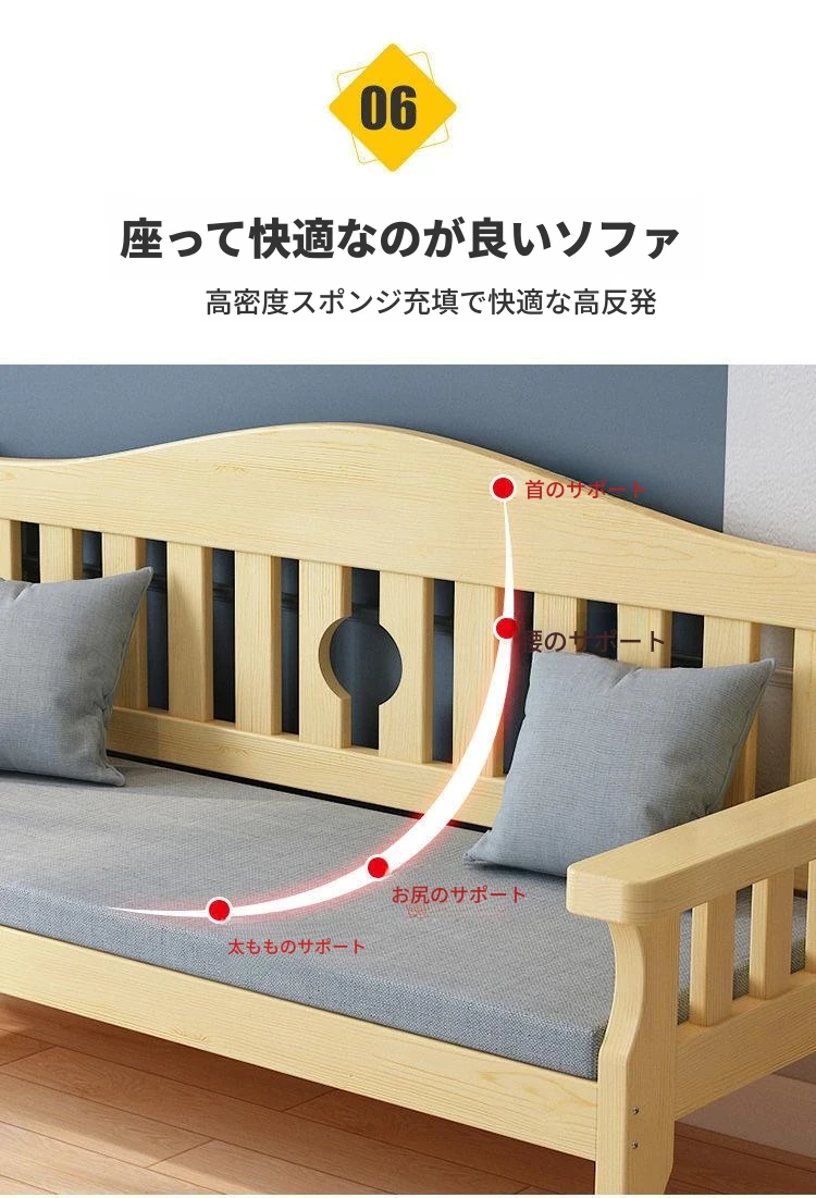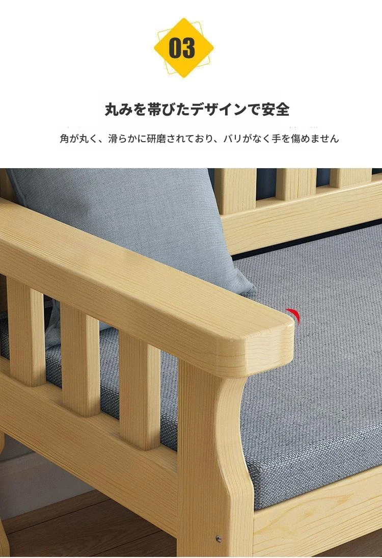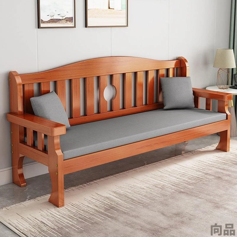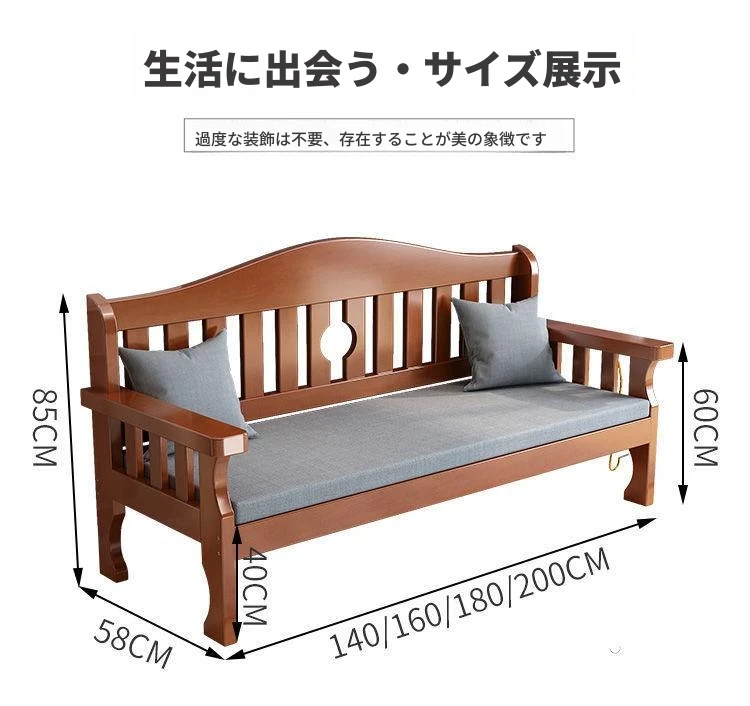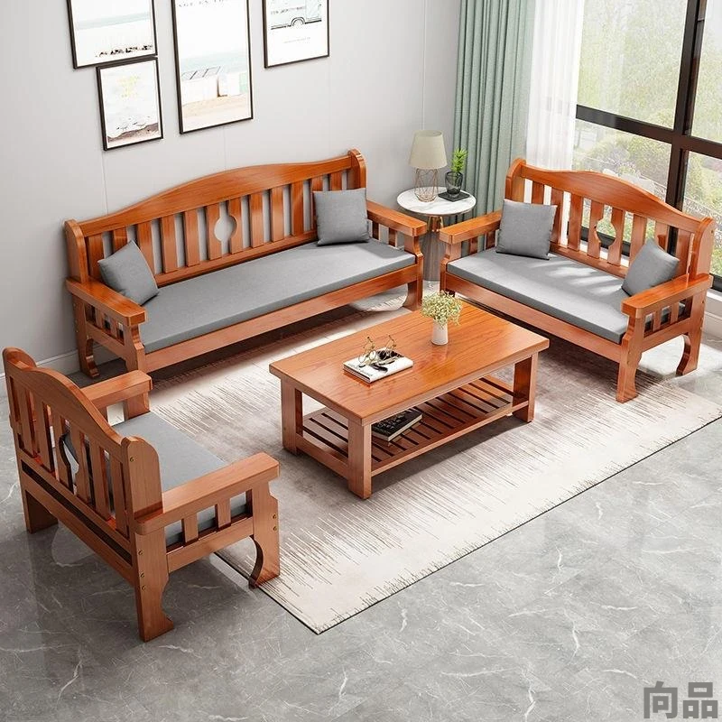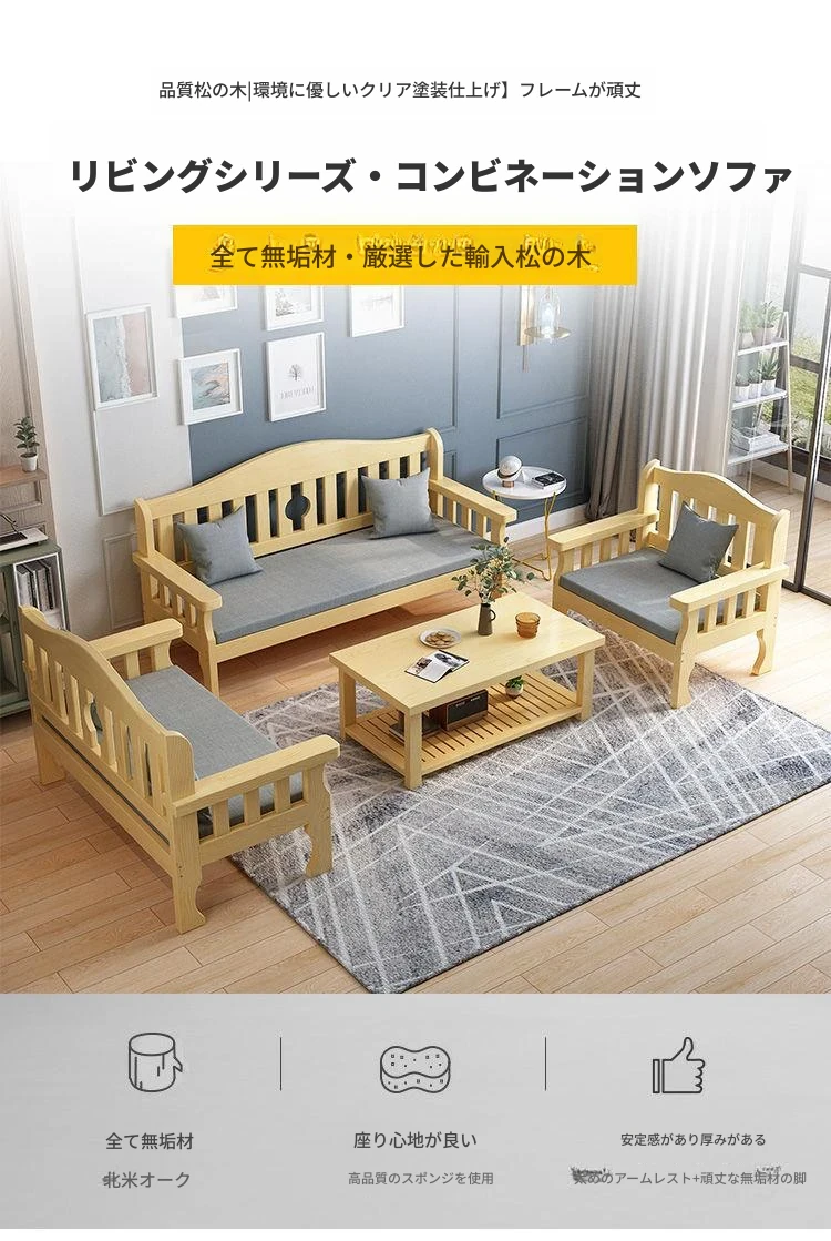 全実木製ソファ3人掛けコンビネーション - 新中式デザインのシンプルでモダンな木製リビングルーム用ソファ、小型住宅に最適な長さ!