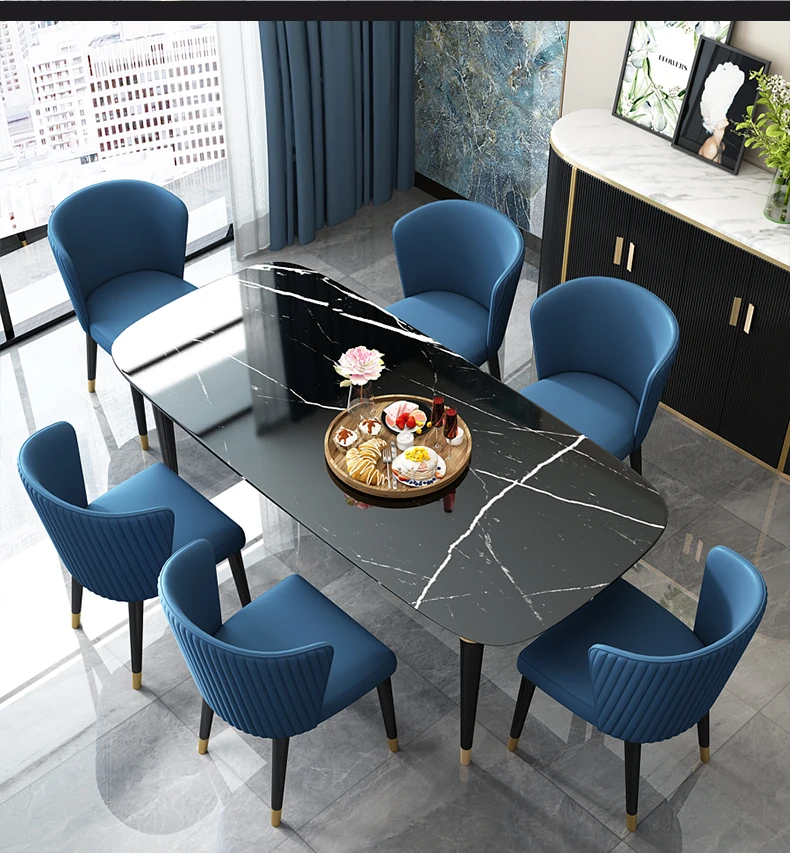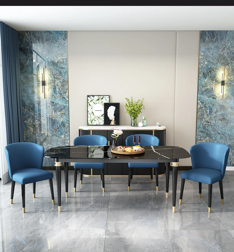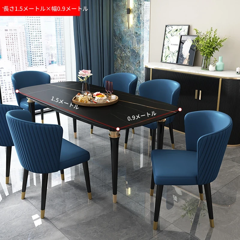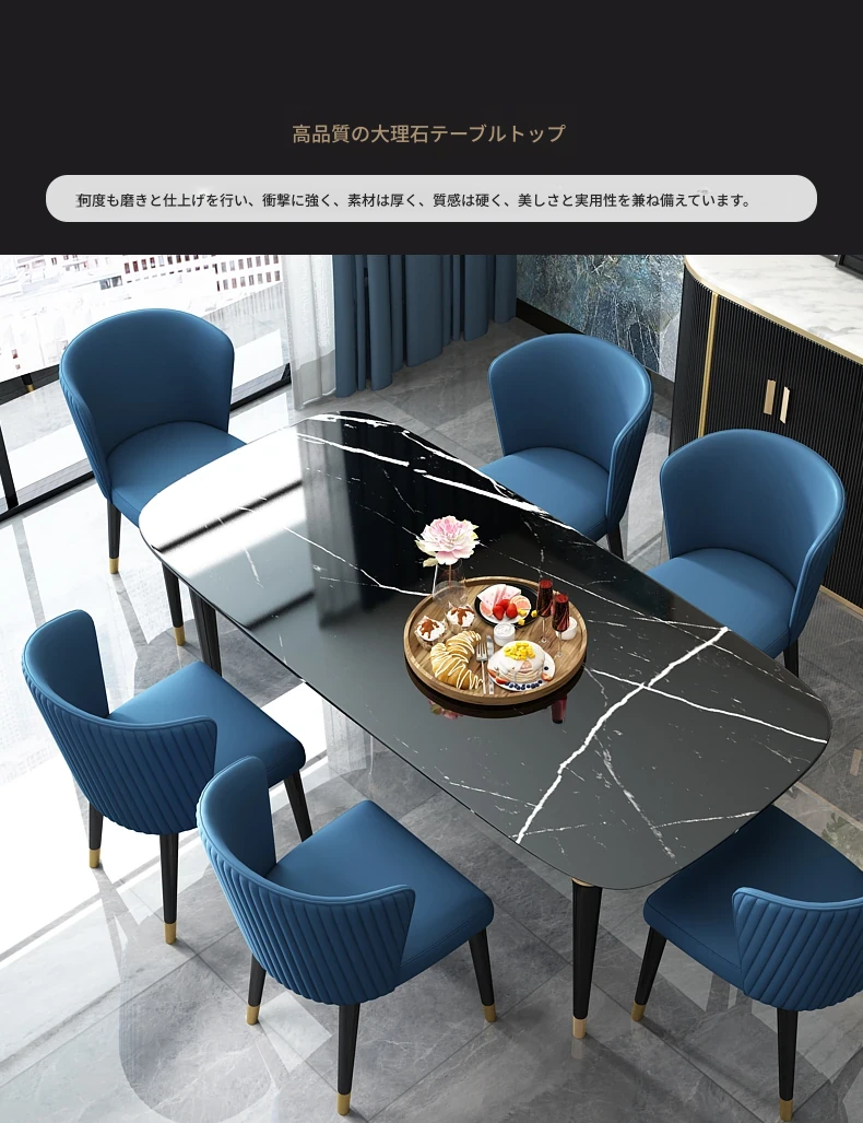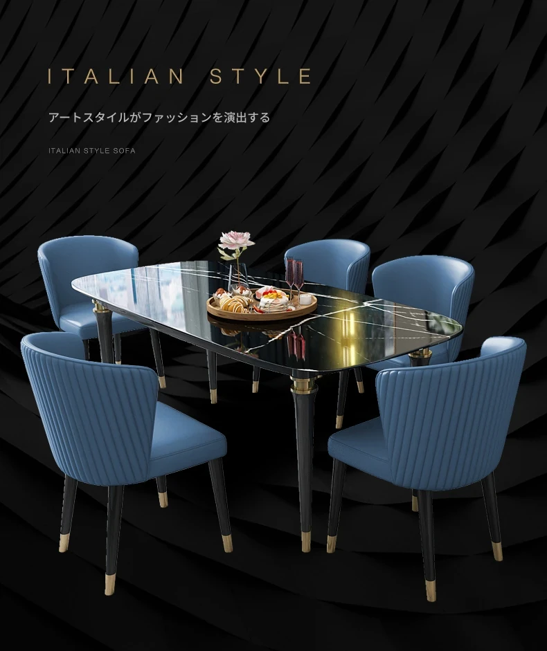 軽やかで贅沢なアメリカンモダンデザインの大理石ダイニングテーブル。ポートスタイルの塗装仕上げと輸入ストーンボードを使用した小型住宅向けの食卓セット。北欧風のダイニングチェアも完備!おしゃれな空間を演出します。