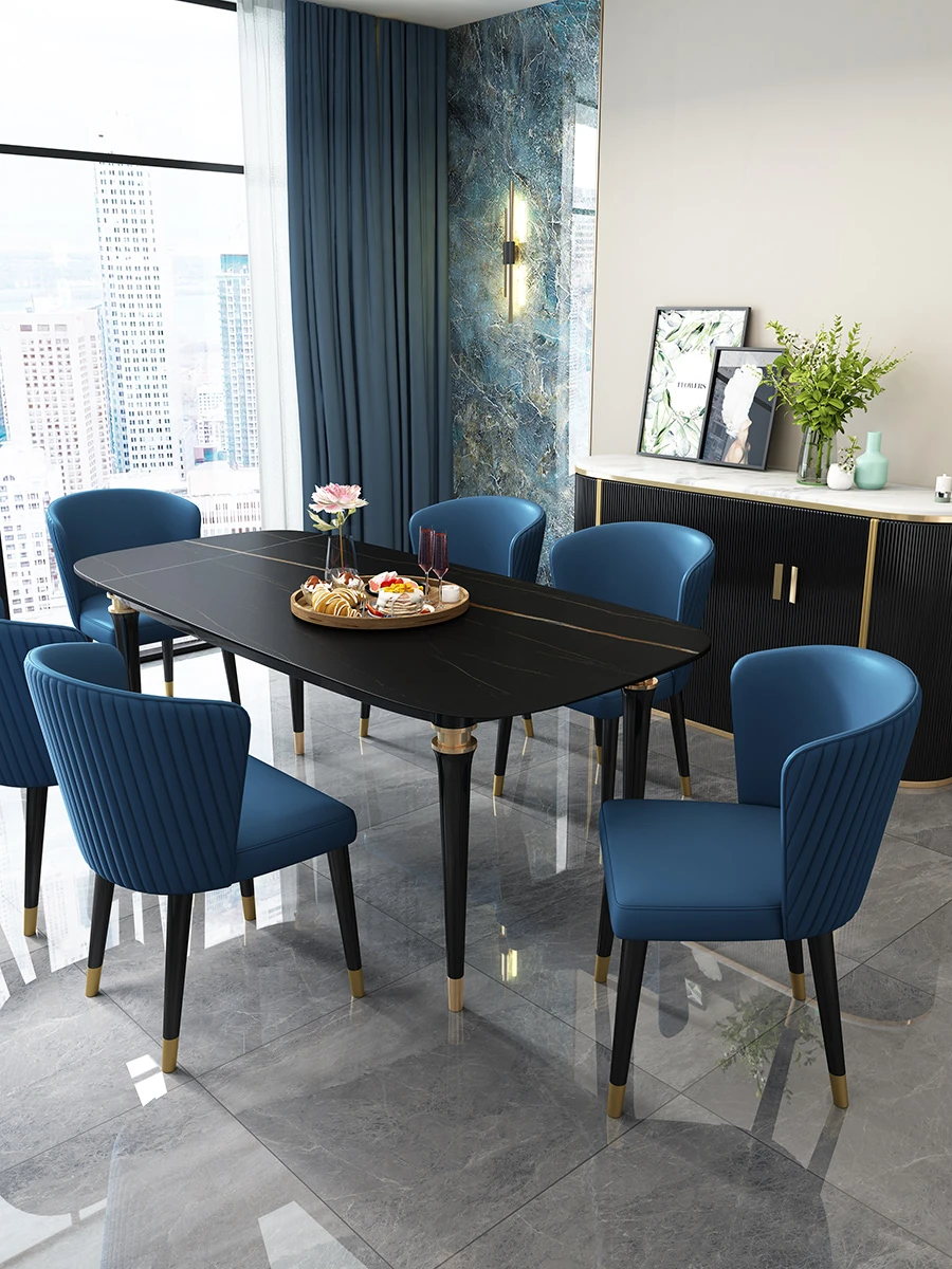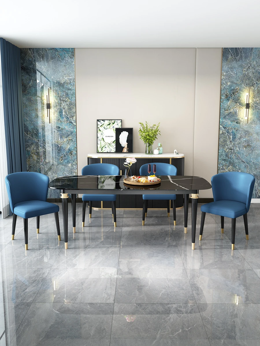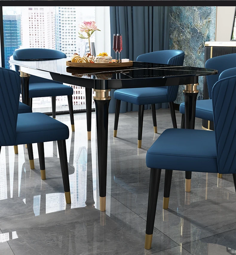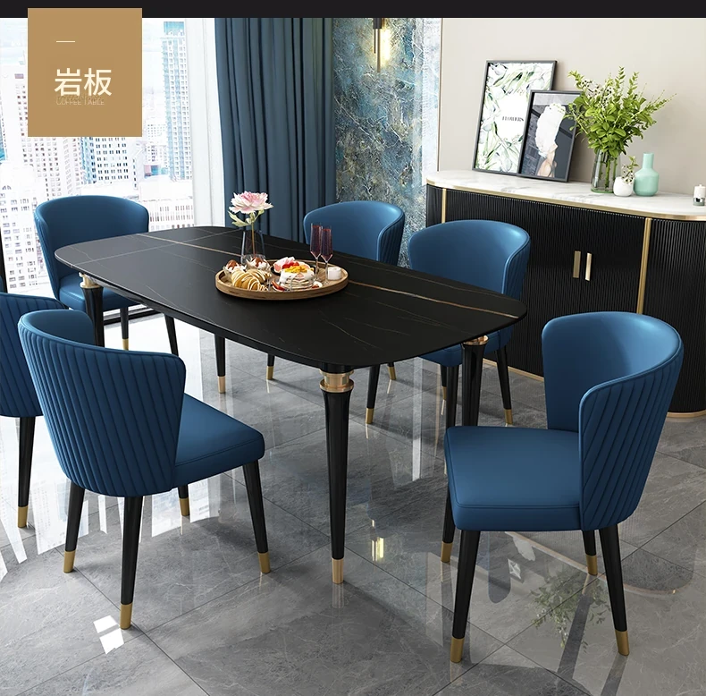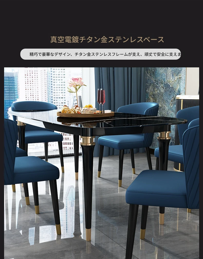 軽やかで贅沢なアメリカンモダンデザインの大理石ダイニングテーブル。ポートスタイルの塗装仕上げと輸入ストーンボードを使用した小型住宅向けの食卓セット。北欧風のダイニングチェアも完備!おしゃれな空間を演出します。