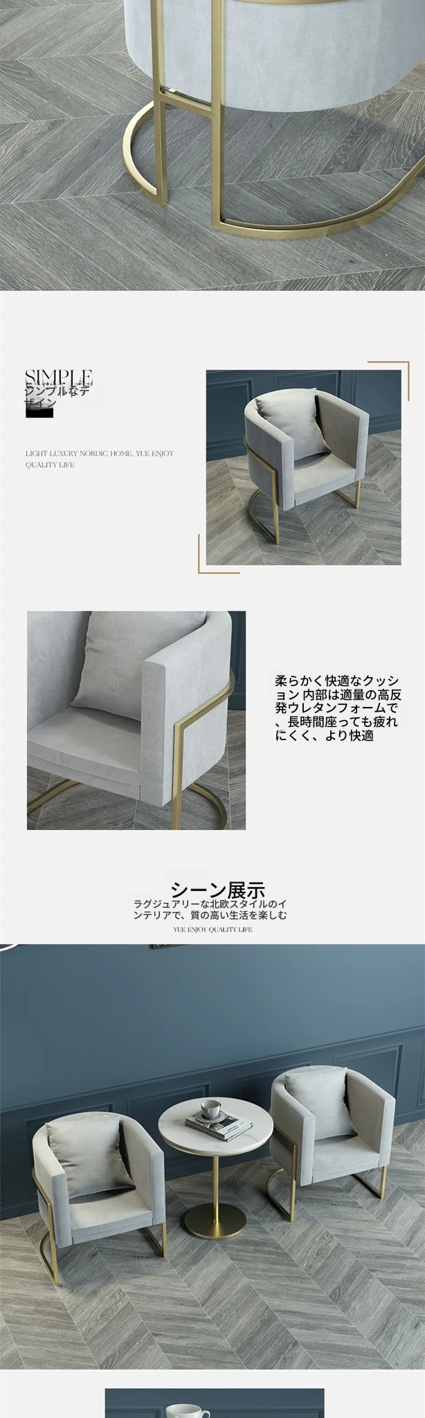 北欧スタイルのリラックスソファとコーヒーテーブルセット|小さなスペースにぴったりの軽奢なデザイン|おしゃれなワーキングスペースやリビングに最適!ネットで話題の快適な休憩椅子で、ゲストをお迎えするのに最適です。