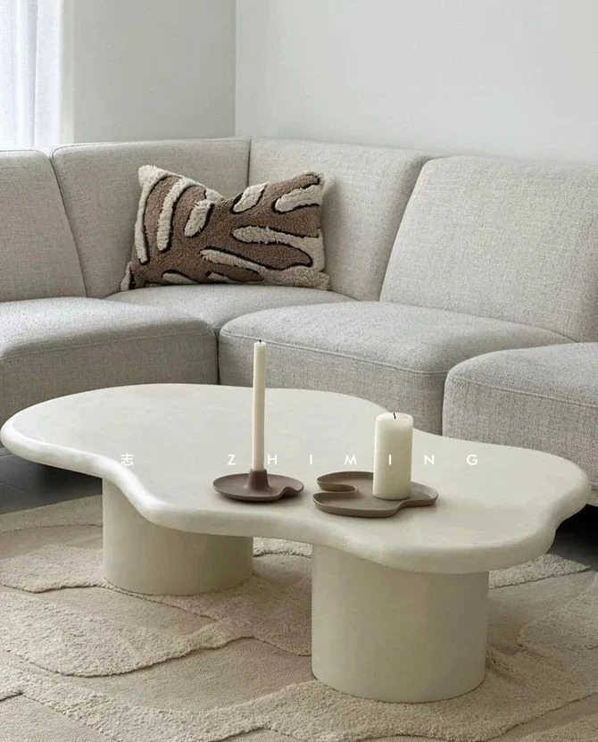 侘寂スタイルの天然大理石ホワイトドットテーブル - 北欧デザインのユニークな雲型コーヒーテーブル、リビングルームに最適なクリエイティブなローテーブル!