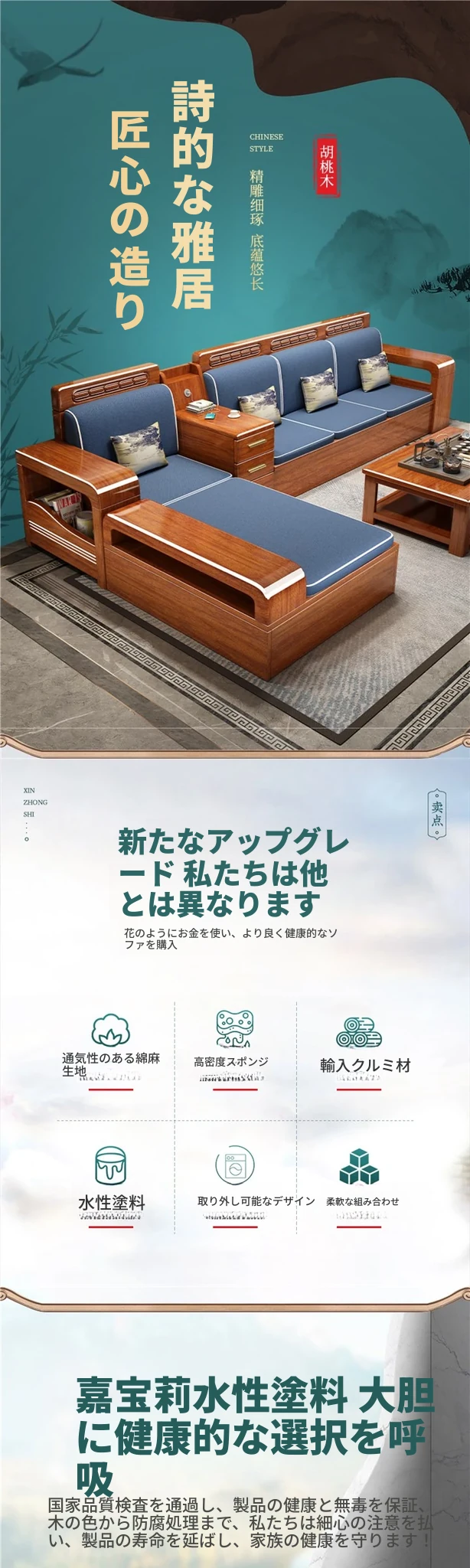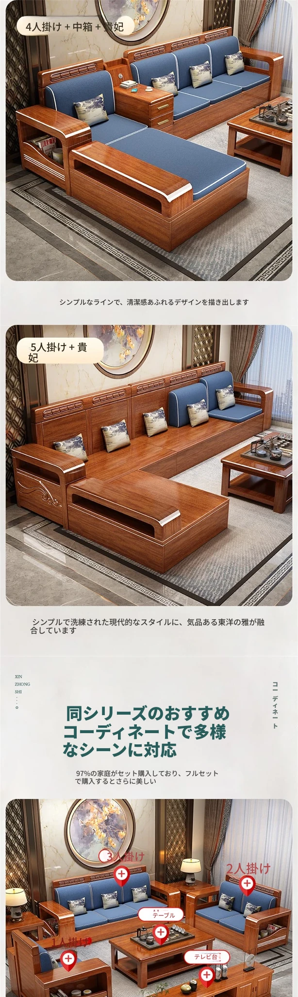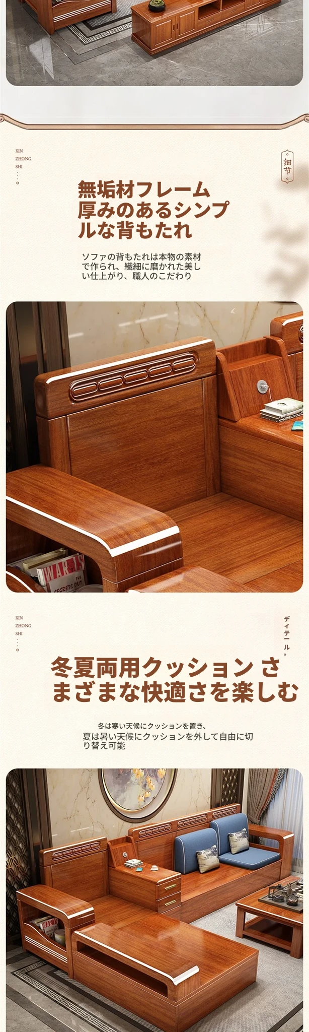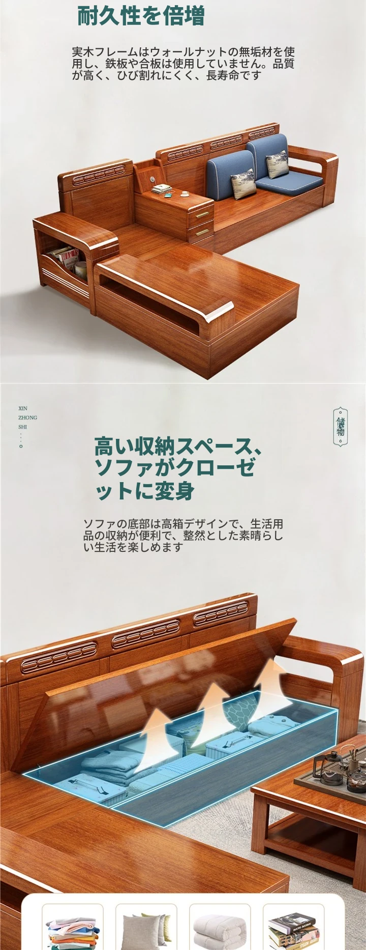 ウォールナット無垢材ソファ | モダンミニマリストデザイン | 冬夏兼用の収納付きリビング用家具 | 高級感あふれる天然木製 | 快適な家族のひとときを演出!