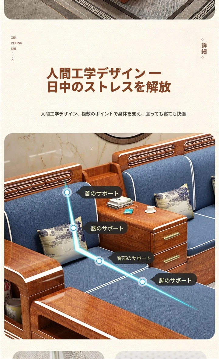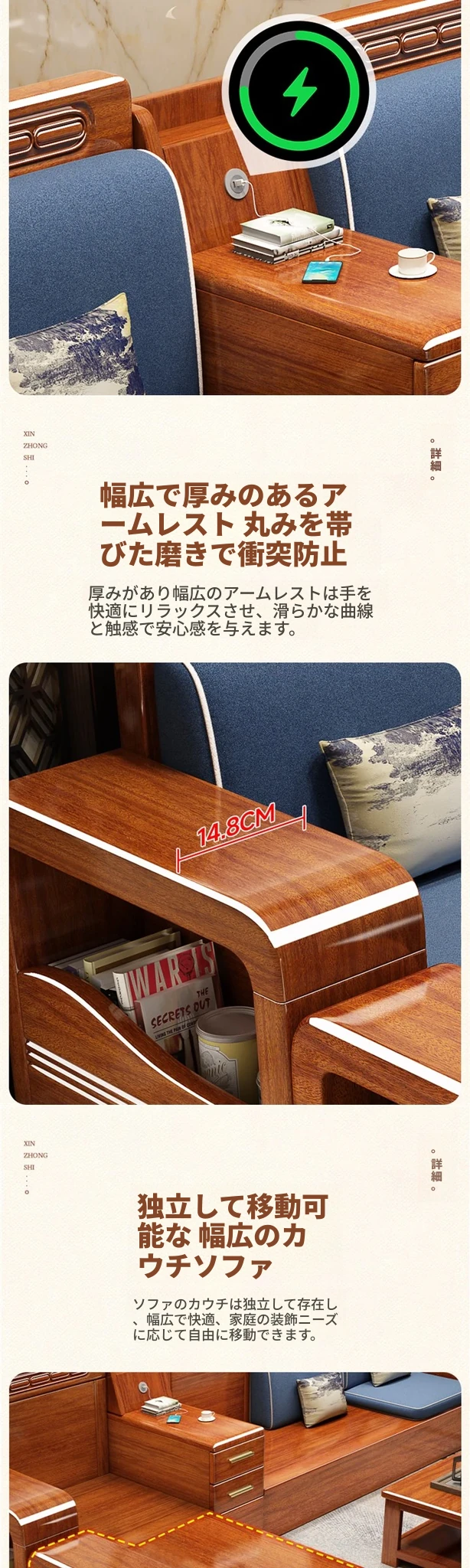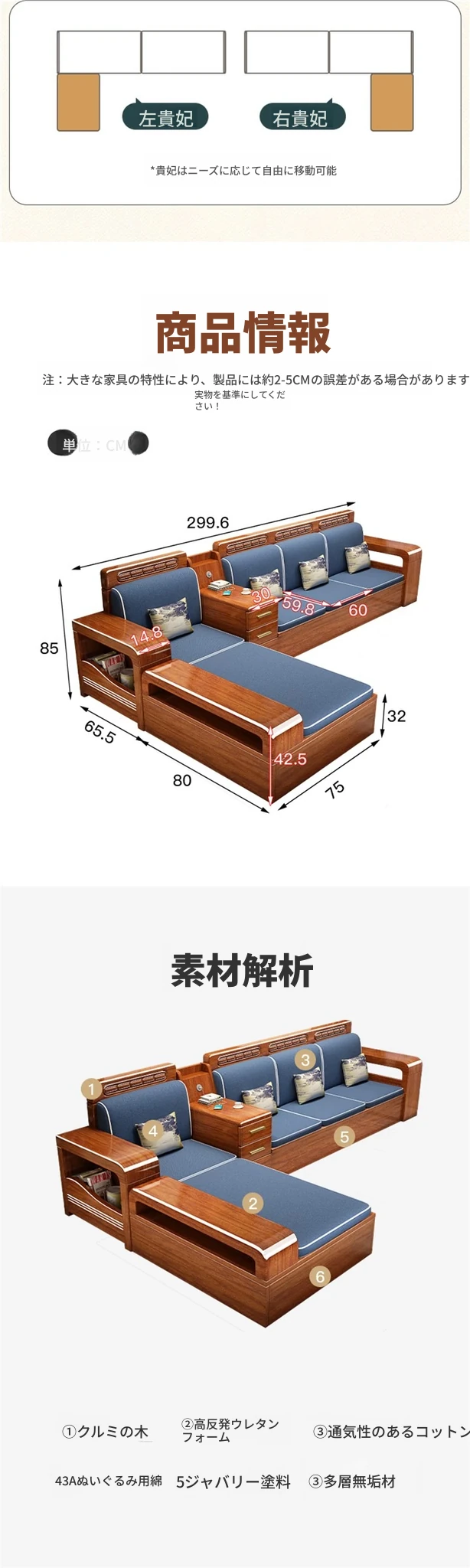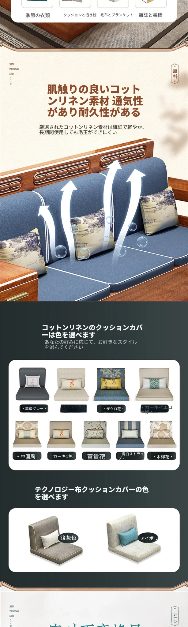 ウォールナット無垢材ソファ | モダンミニマリストデザイン | 冬夏兼用の収納付きリビング用家具 | 高級感あふれる天然木製 | 快適な家族のひとときを演出!