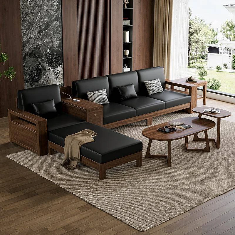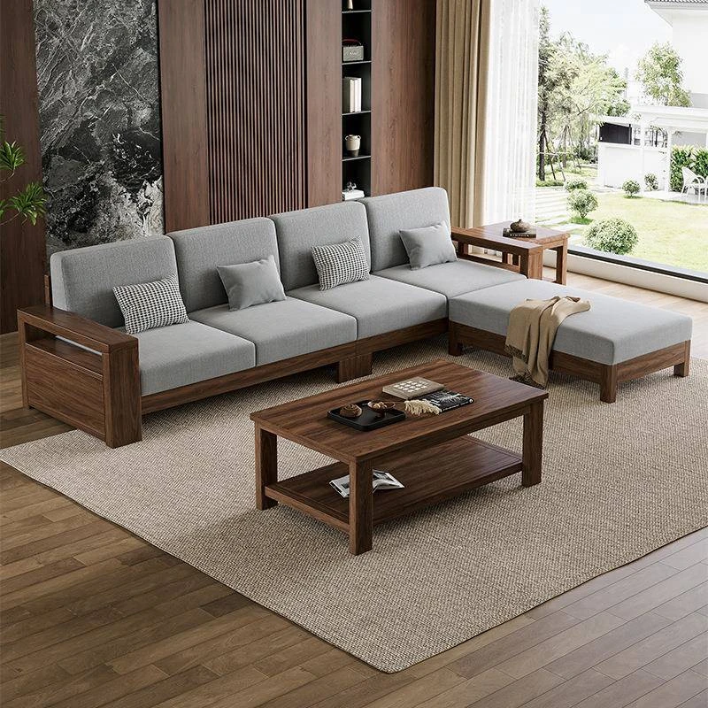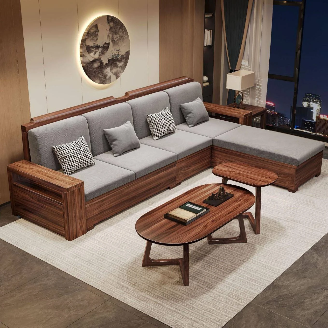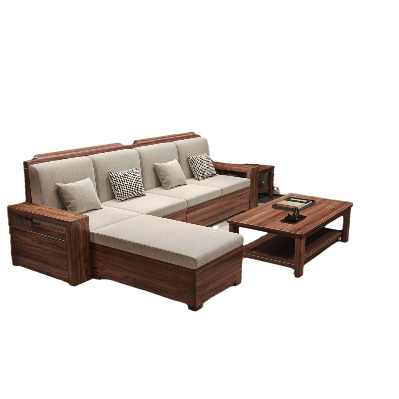 高級ブラックウォールナット製 中式実木ソファセット 冬夏兼用 L字型コーナーソファ 経済的な収納スペース付き。おしゃれで機能的なお部屋を演出!