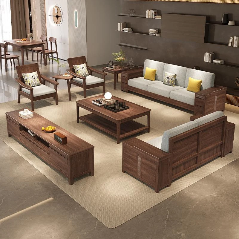Luxury Black Walnut Wood Sofa Set for Small Spaces - Elegant Corner Fabric and Solid Wood Couch for Villa Living Rooms