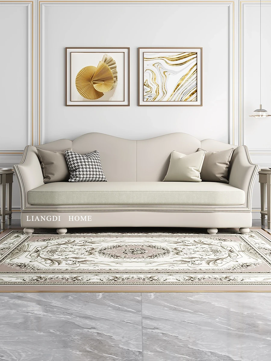 Chic American Modern Luxury Classic Solid Wood Sofa Set - Champagne Color Genuine Leather for Spacious Villas, Perfect for Large Gatherings