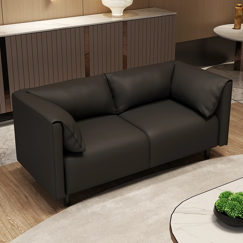 Minimalist Italian-style Genuine Leather Sofa Set for Small Living Rooms - Modern Modular Block Design, Perfect for Chic Interiors