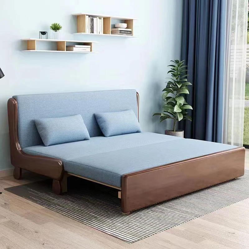 Minimalist Solid Wood Sofa Bed - Versatile Folding Design for Small Homes, Perfect for Living Rooms, Offices, and Balconies. Ideal Space-Saving Solution for Single Sleepers!