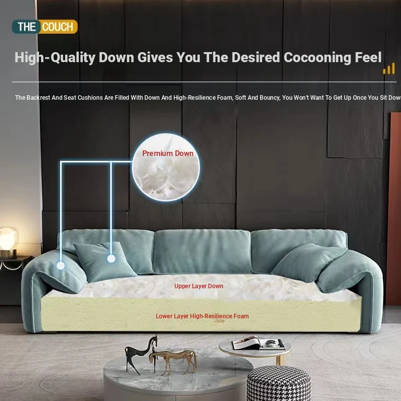 Stylish Minimalist Italian Sofa with Elephant Ear Design - Modern Nordic Lightweight Luxury in Tech Fabric and Down for Small Spaces