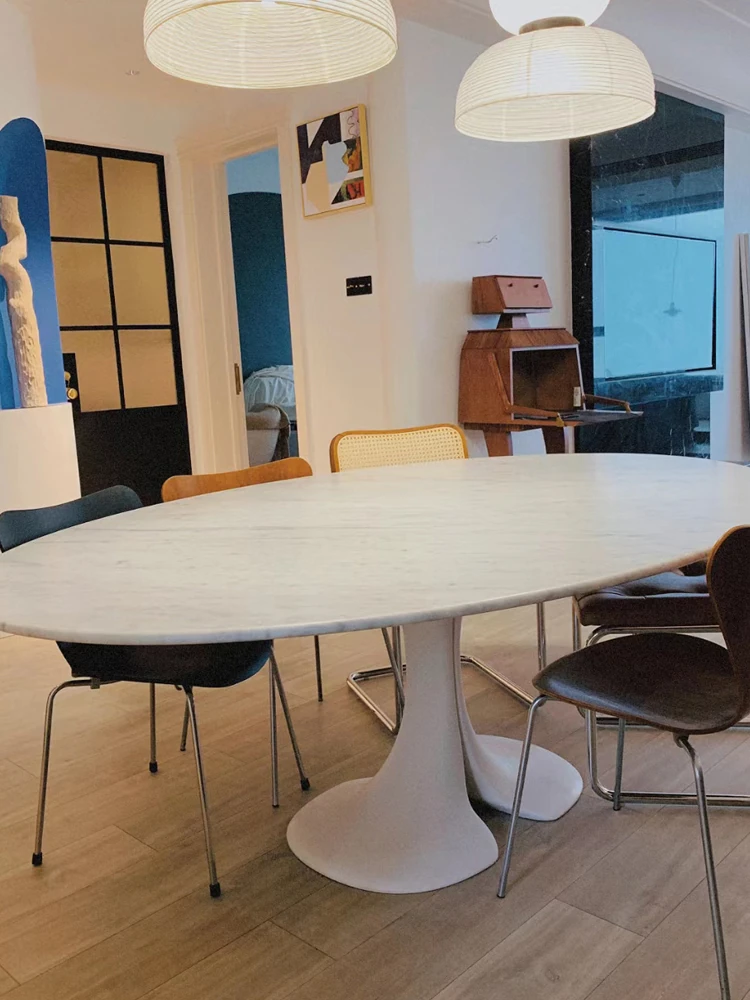 Elegant Natural Marble Dolphin Oval Dining Table - Designer Mermaid Rock Plate, Stunning White UFO Round Table for Luxurious Dining Experience