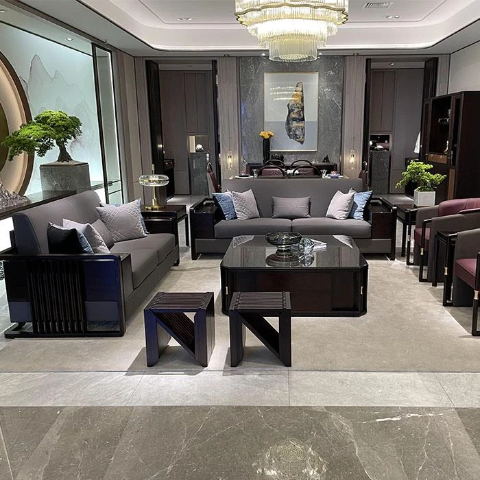 Modern Minimalist Zen Style Living Room Furniture Set for Small Apartments - Solid Wood Chinese Sofa Combination for Villas