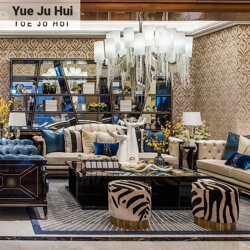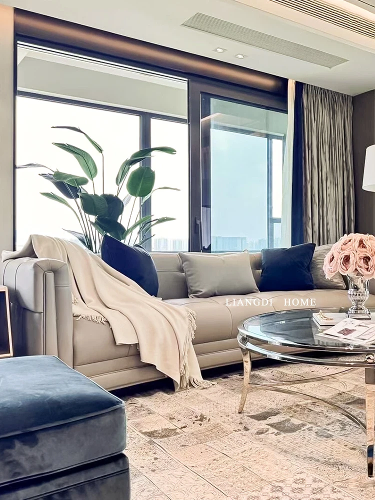 Elegant American-style Light Luxury Real Wood Genuine Leather Art-Inspired Sofa Set - Modern Minimalist Living Room Sofa Combination