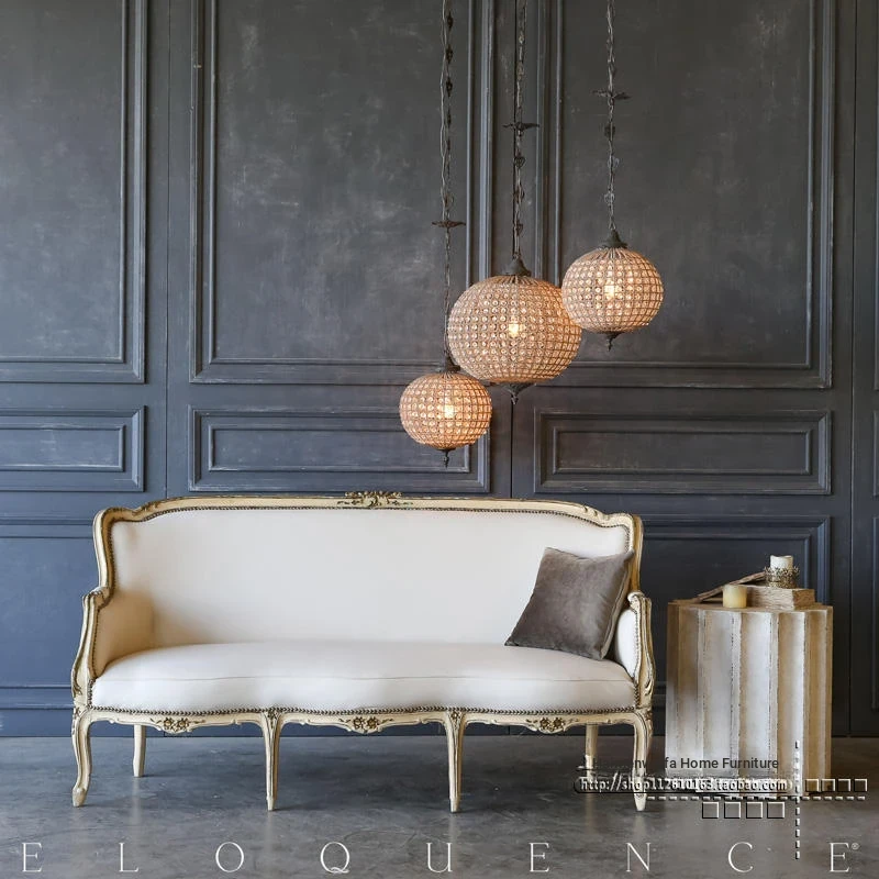 American Solid Wood Sofa - Art-Style Living Room Furniture, Elegant French Country Vintage Single, Double, and Three-Seater Sofas for a Chic Home Decor