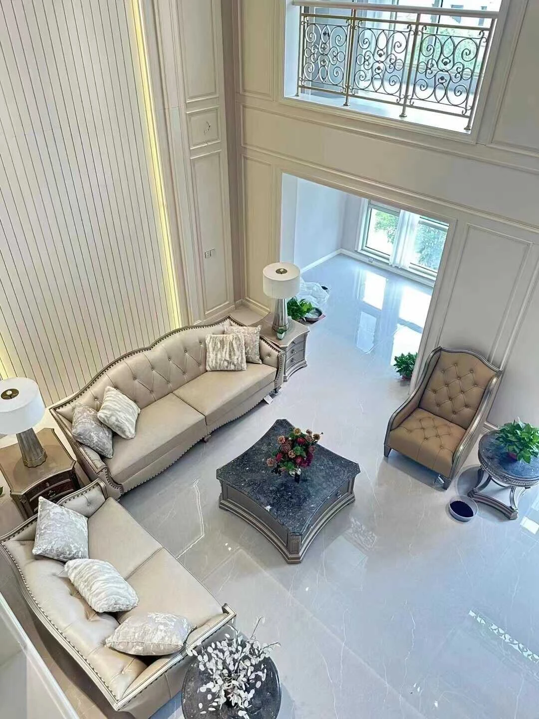 Luxurious American-Style Genuine Leather Sofa - Full Suede Upholstery for Living Room, Hotel Lobby Reception, Villa Courtyard, and Elegant Spaces with Stylish Pull Buckle Design.