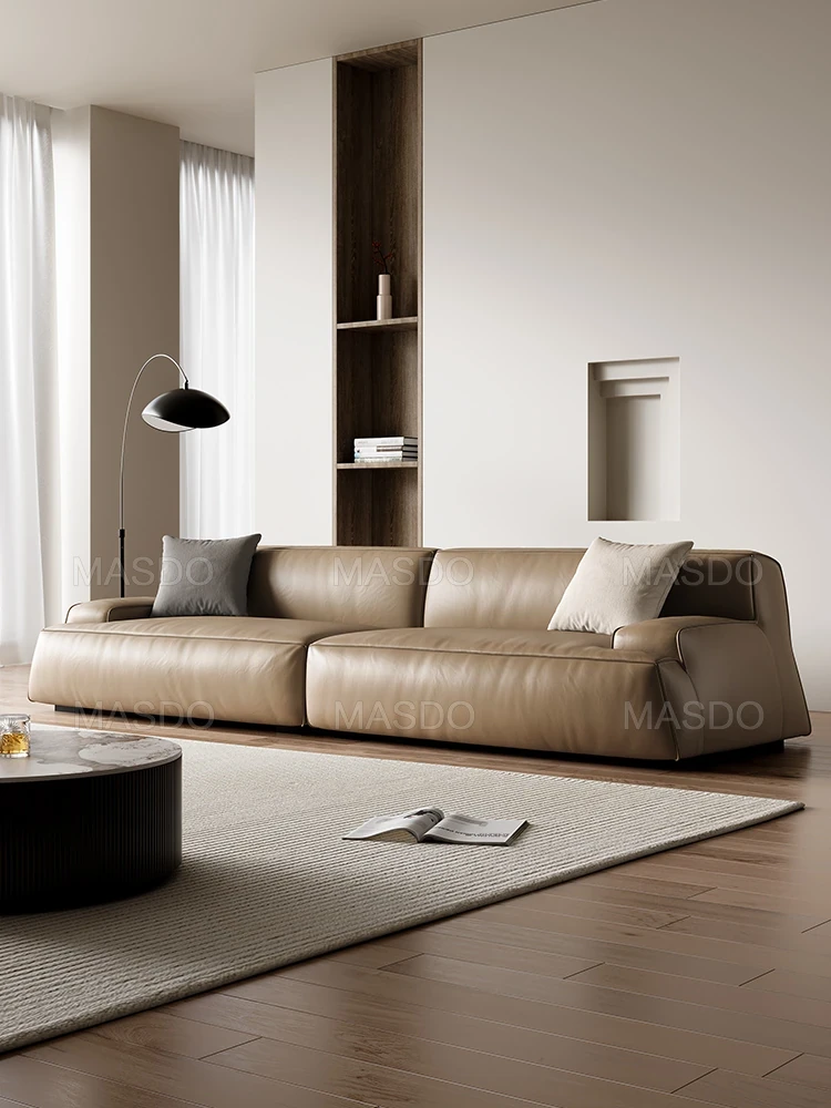 Italian Minimalist Leather Sofa - Premium Top-Grain Leather, Modern Living Room Set, Simple & Stylish, Down-Filled, Nordic Light Luxury, Four-Seater Comfort