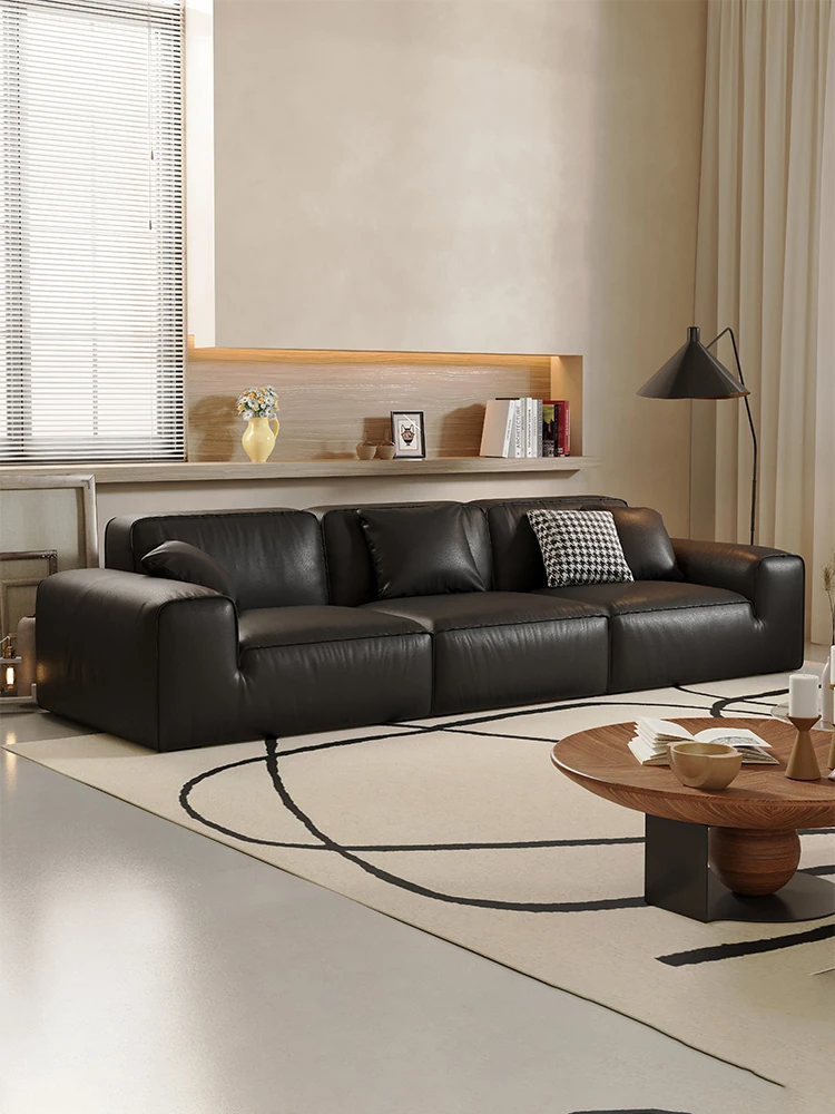 イタリアンスタイルの夏の大黒牛本革ソファー、リビングルームに最適な小型住宅向け!クリーミーなデザインと一級牛革を使用した直線的なデザインで、デザイナーの極簡スタイルを実現。優雅さと機能性を兼ね備えた一品です!
