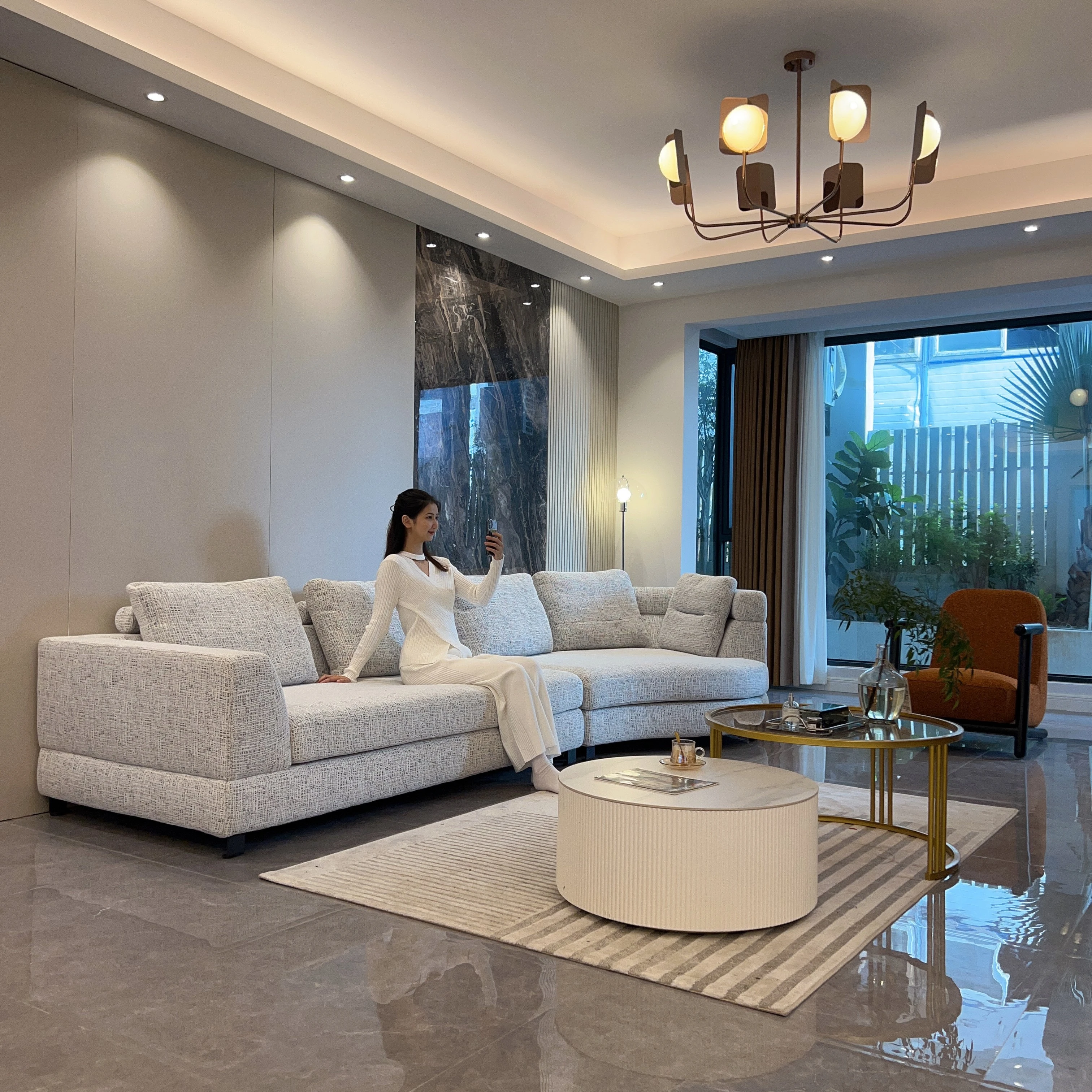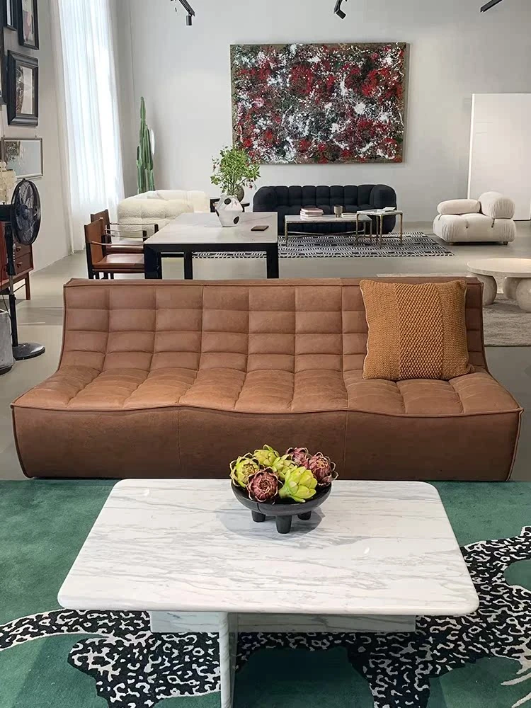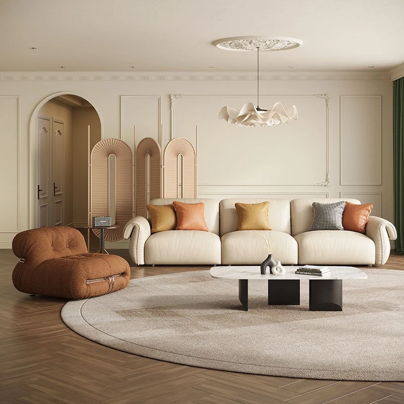 イタリアンミニマリスト・コナリ皮革ソファ|ラグジュアリーなリビングに最適!広々としたフラット・ヴィラデザインのアーチ型ユニークソファで、洗練された空間を演出。