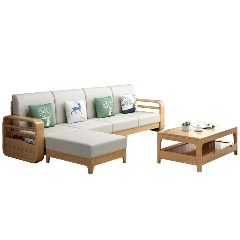 全実木製モダン中式リビング用ソファ|冬夏兼用・小型スペースにも最適なコーナー収納付きナチュラルウッドソファ
