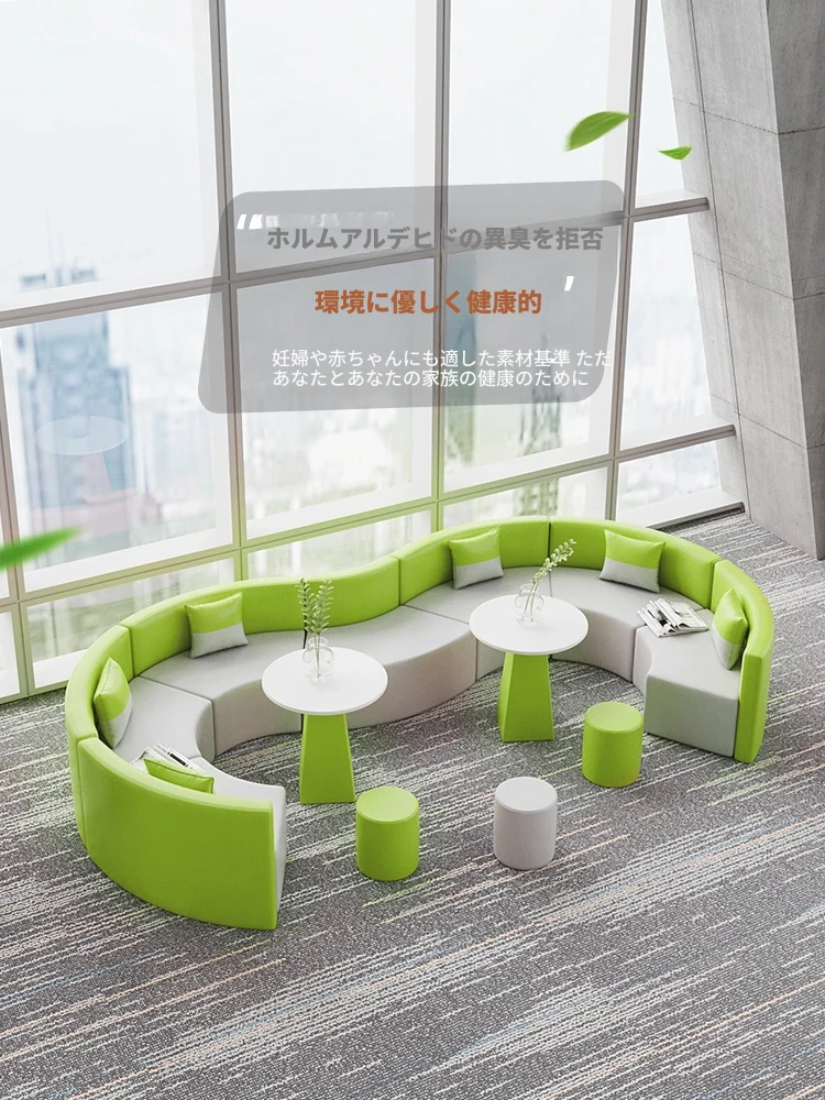 北欧スタイルのS字型クリエイティブソファセット:モダンな接客スペースに最適なリラックスソファとコーヒーテーブルのコンビネーション!オフィスや休憩エリアにぴったりで、洗練されたデザインが魅力です。