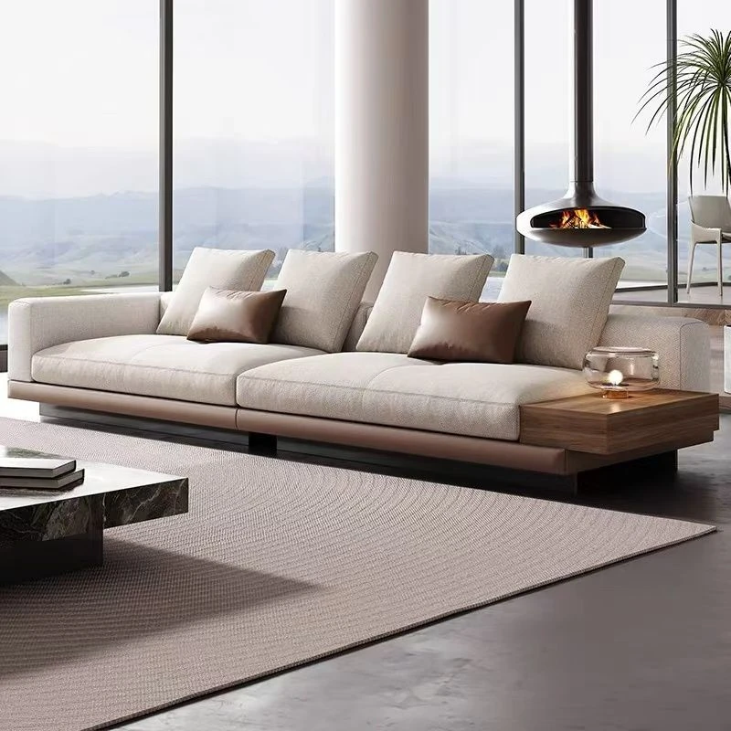 イタリアン・コナリ高級コットンリネンベルベットソファー 中古風リビング大平面直線ミニマリスト本革ソファー - シンプルで洗練されたデザインで、快適なひとときを提供します。