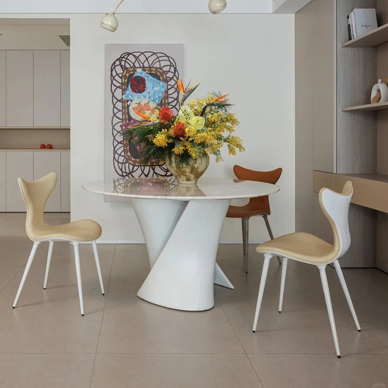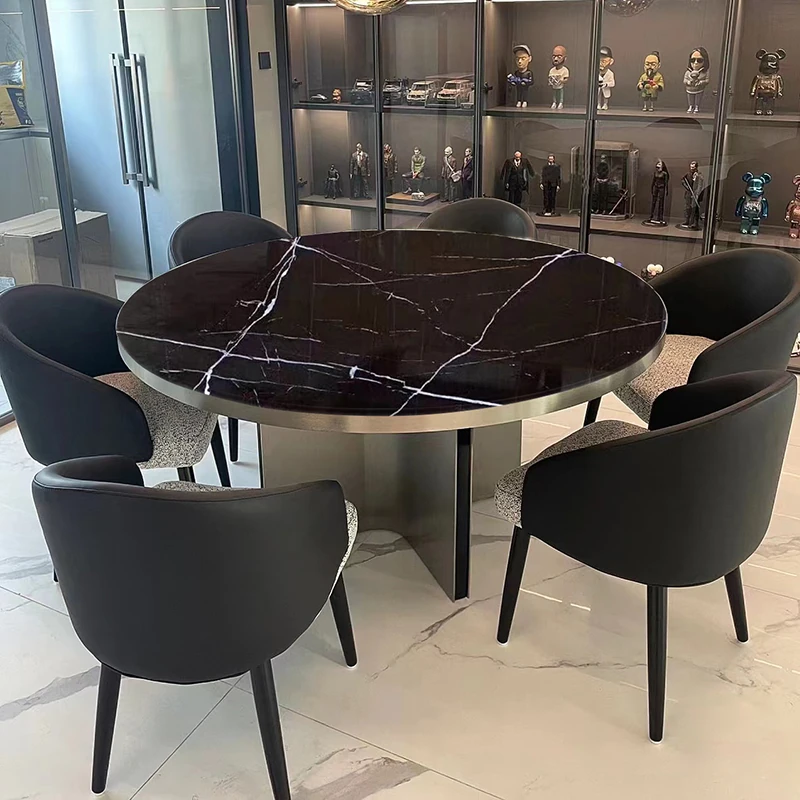 人気の軽奢スタイル大理石ダイニングテーブル&チェアセット!ステンレス製の円形テーブルで、モダンでシンプルなデザイン。小さなスペースにもぴったりな、食事を楽しむための理想的な選択です!