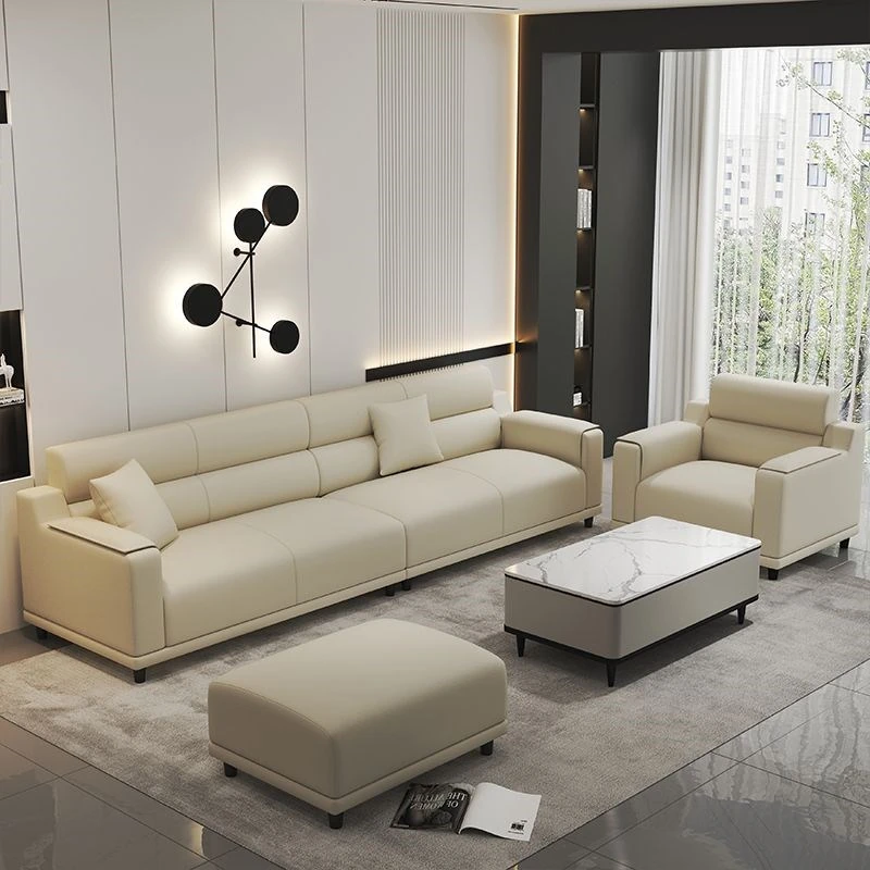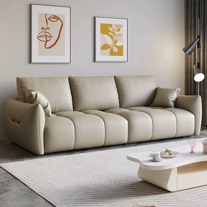 クリーム風真皮ソファー 小型リビングに最適 軽奢華ダウンラテックス直排 3〜4人用 ハイ脚クッション雲ソファ