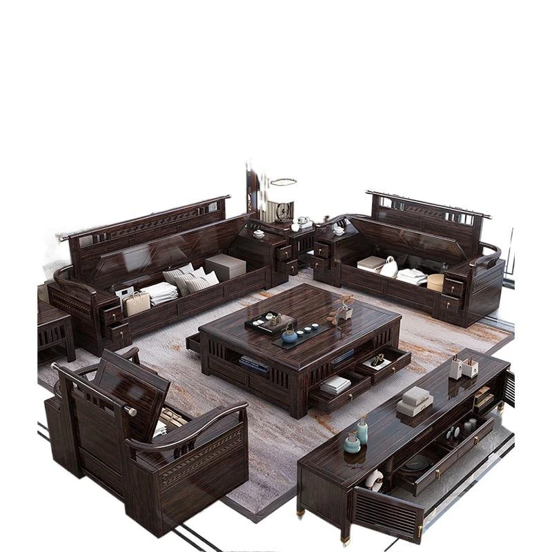 紫金檀木製の新中式スタイルのモダンなシンプルソファ - 冬夏兼用、収納付き、大小さまざまなリビングルームに最適な家具!快適さと美しさを兼ね備えたあなたの理想の空間を演出します。