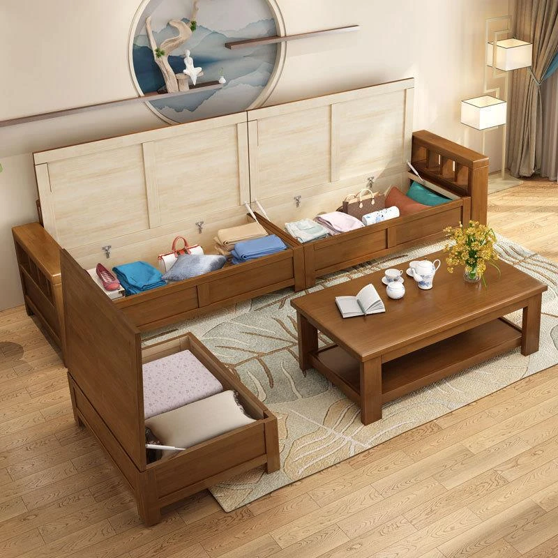 新中式スタイルの無垢材ソファ、レッドサンダルウッド製。冬夏兼用、リビングルームに最適な収納付きモダンシンプルなカウチコーナーソファ。優雅なデザインで、心地よいくつろぎを提供します!